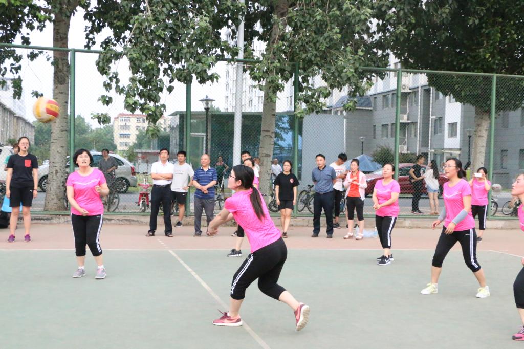 队员们斗志昂扬,英姿飒爽,配合默契,扣球、发球,一传、二传,每个动作都尽显着严谨认真、奋力拼搏的风采。第一局比赛结束之后,老师们总结经验、调整战术。在比赛第二局中,郑凤华老师带领女队员们沉着应战,打出一波反击小高潮,赢得阵阵欢呼与掌声。本着“友谊第一、比赛第二”的宗旨,双方队员相互切磋,赛出水平,赛出友谊,由于缺乏赛前训练,第一场比赛惜败对手。