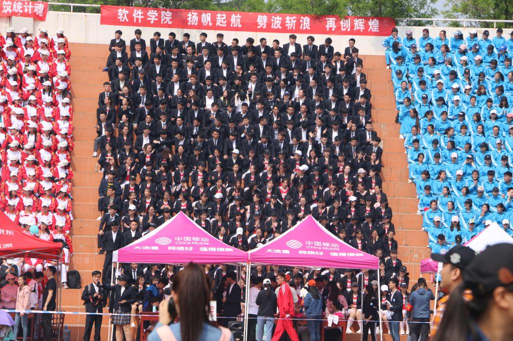 2018年春季运动会在南操场盛大开幕,学校领导,各部、处以及各学院主要负责人出席开幕仪式。软件学院党委书记田云飞、院长高仲合、党委副书记田凯、团委书记范瑞红、辅导员郑凤华来到比赛现场,全程陪伴同学们一起为软件学院运动员加油助威。