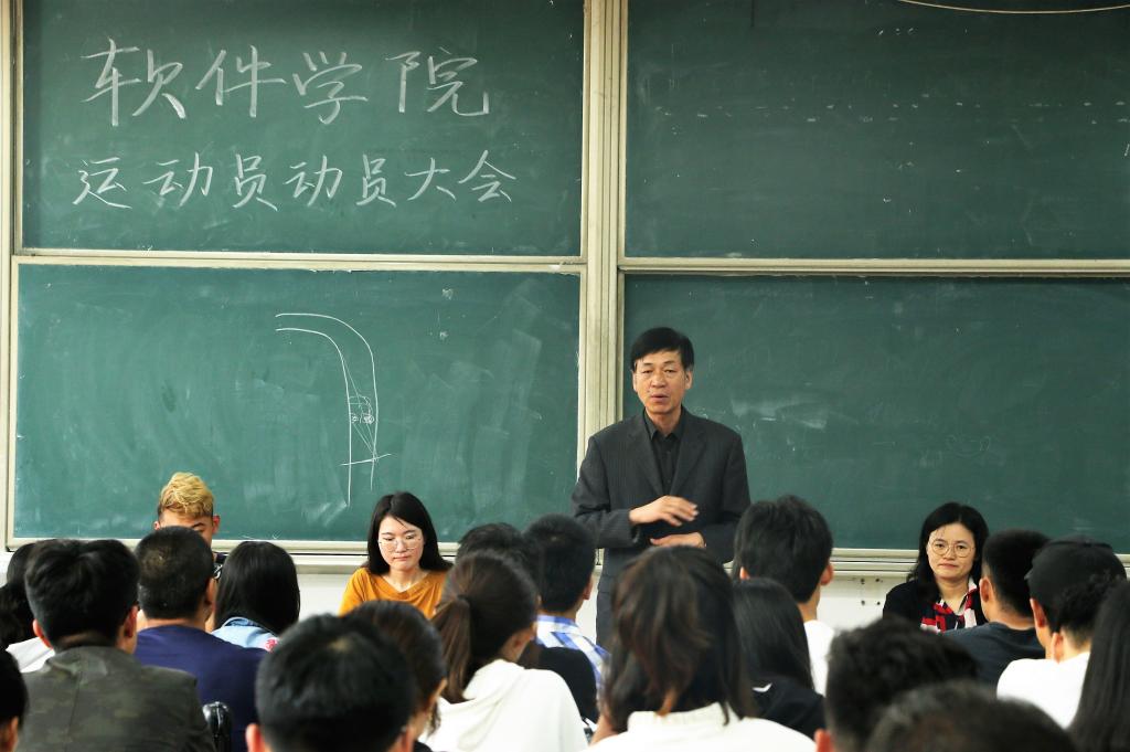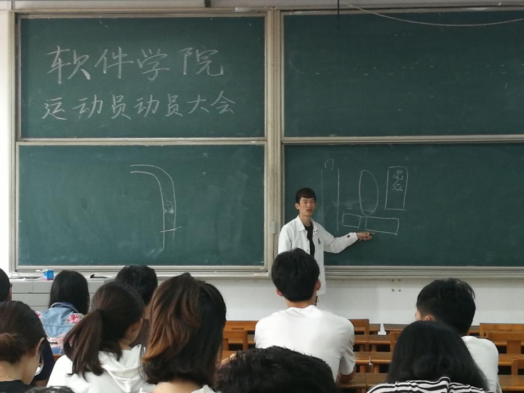 4月21日上午,软件学院运动员动员大会在综合楼103成功召开。软件学院党委书记田云飞、团委书记范瑞红、辅导员郑凤华、教练杨存出席会议。学生会主席团代表,16级、17级班长及团支书,全体运动员参加会议。会议由郑凤华老师主持。