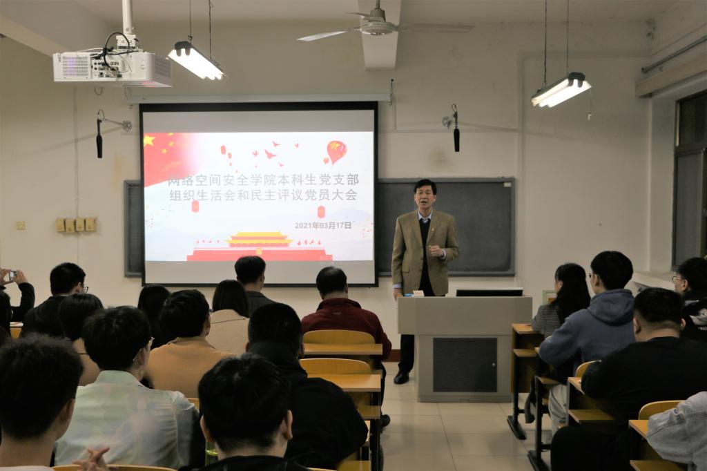 会议最后,田云飞书记强调:一个党员就是一面旗帜,各位党员同志要积极进取,不断进步,发挥党员模范带头作用,为学校、社会贡献绵薄之力。新时代下要贯彻落实党中央的精神,提高自己的政治觉悟和思想,加强党员教育管理和作风建设,加强纪律建设和思想政治教育。
