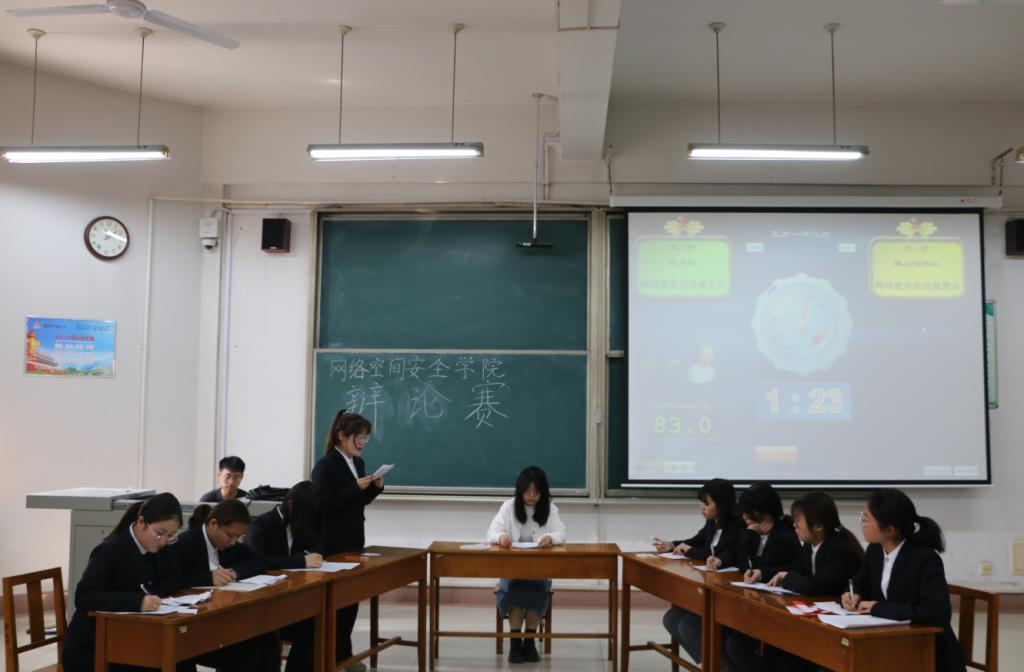 辩论赛决赛在综合楼205顺利举行。经过一个月的精彩角逐,飞跃队、排山倒海队和你不队成功进入决赛。