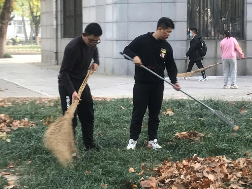 开展了打扫校园卫生的“我为群众办实事”主题活动,辅导员丁允念和2021级同学们参加活动。