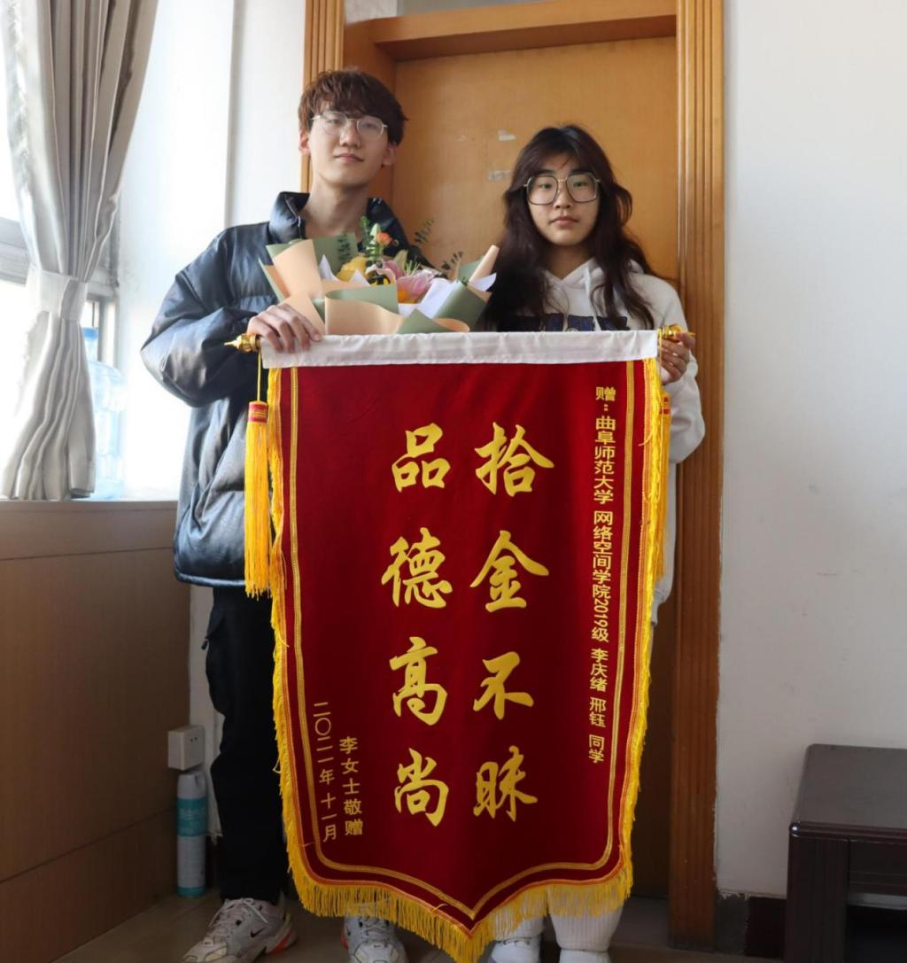 经了解,2021年11月21日晚上,李庆绪和邢钰两位同学在曲阜市蓝海影城附近捡到了苹果手机一部。该手机市场价值九千余元,李庆绪与邢钰捡到手机后,不为钱财所动,第一时间想到的是失主发现手机丢失后的焦急心情,便等待失主返回寻找。最终李女士打来电话,两名同学与失主李女士取得联系,将手机物归原主。就有了上面的一幕,社会人士李女士专程来到第一色情网