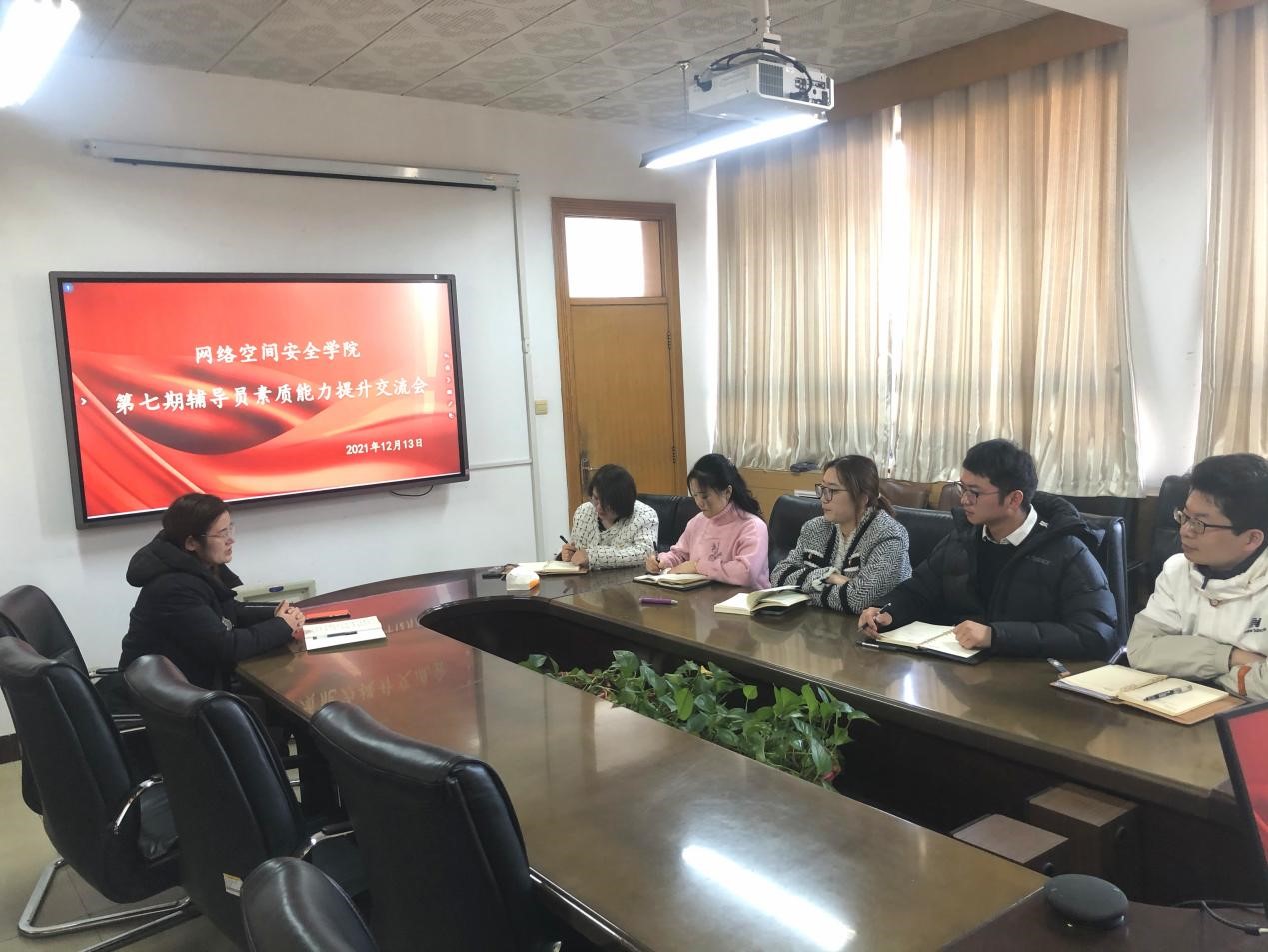 第七期辅导员素质能力提升交流会在410会议室举行,学院党委副书记范瑞红,辅导员洪亚玲、武玉龙、丁允念、高鹏、相青、于媚媛参加学习交流。