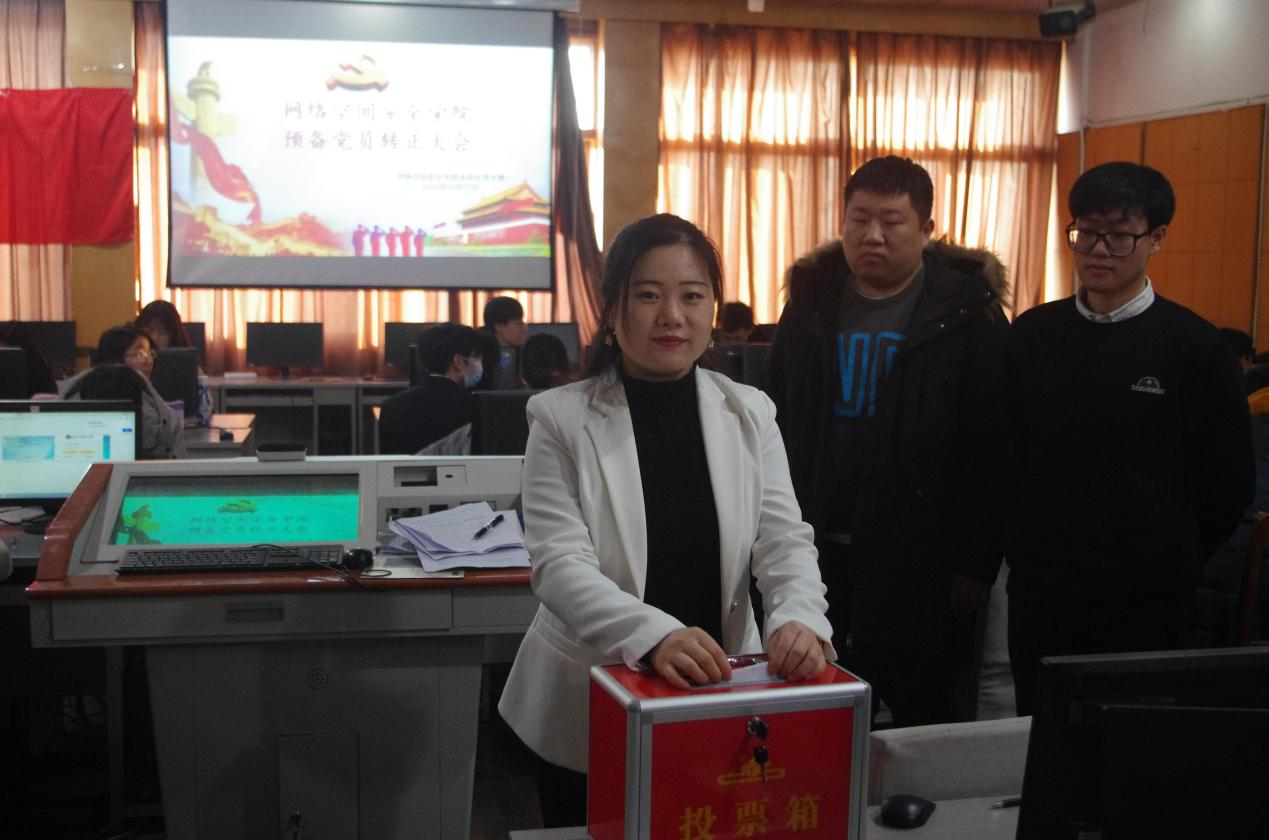 本科生党支部预备党员转正大会按照党章规定的程序逐一进行,付江、邵心茹、王燕、苏靖斐等14名预备党员先后宣读转正申请书,向党组织汇报在预备期间的表现以及思想、学习、工作情况。范瑞红依次介绍了14名预备党员在预备期间的表现情况和意见,参会党员进行充分的党内讨论后,采取无记名投票方式进行表决,王一宁、秦素、秦承斌、刘雪涵分别负责计票和检票工作。经统计,14名预备党员全票通过。范瑞红对14名预备党员表示祝贺,希望这14名同志以此为契机,进一步加强自身思想学习,充分发挥一名党员同志的模范带头作用。