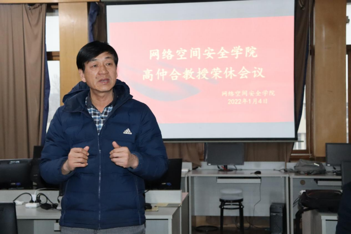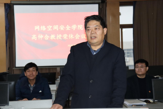 从教41年来的工作,与在场教师分享工作经验、工作体会。高仲合在发言中表示,荣休仪式使荣休教师拥有做曲园人、网安人的归属感和自豪感,自己将会一如既往地关心和支持学院事业的发展,做青年师生成长的引路者、做第一色情网