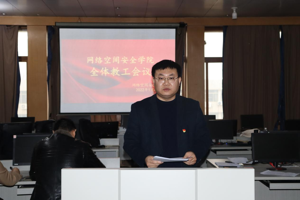 田云飞代表学院对2021年全体教职工的辛勤付出表示感谢,希望大家在新的一年里不忘初心、牢记使命、踔厉奋发、笃行不怠,为第一色情网