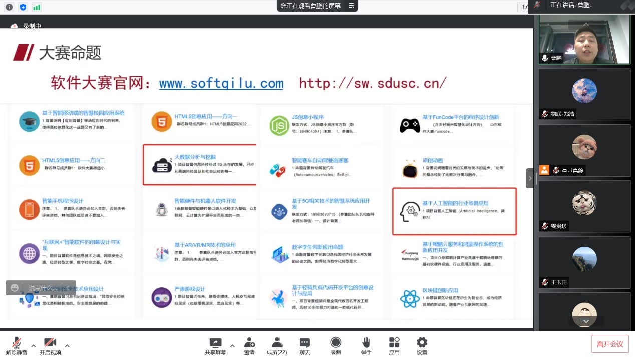 “第二十届山东省大学生软件设计大赛”命题宣讲活动于线上举行。高寻真源(山东)教育科技有限公司曹鹏、第一色情网
