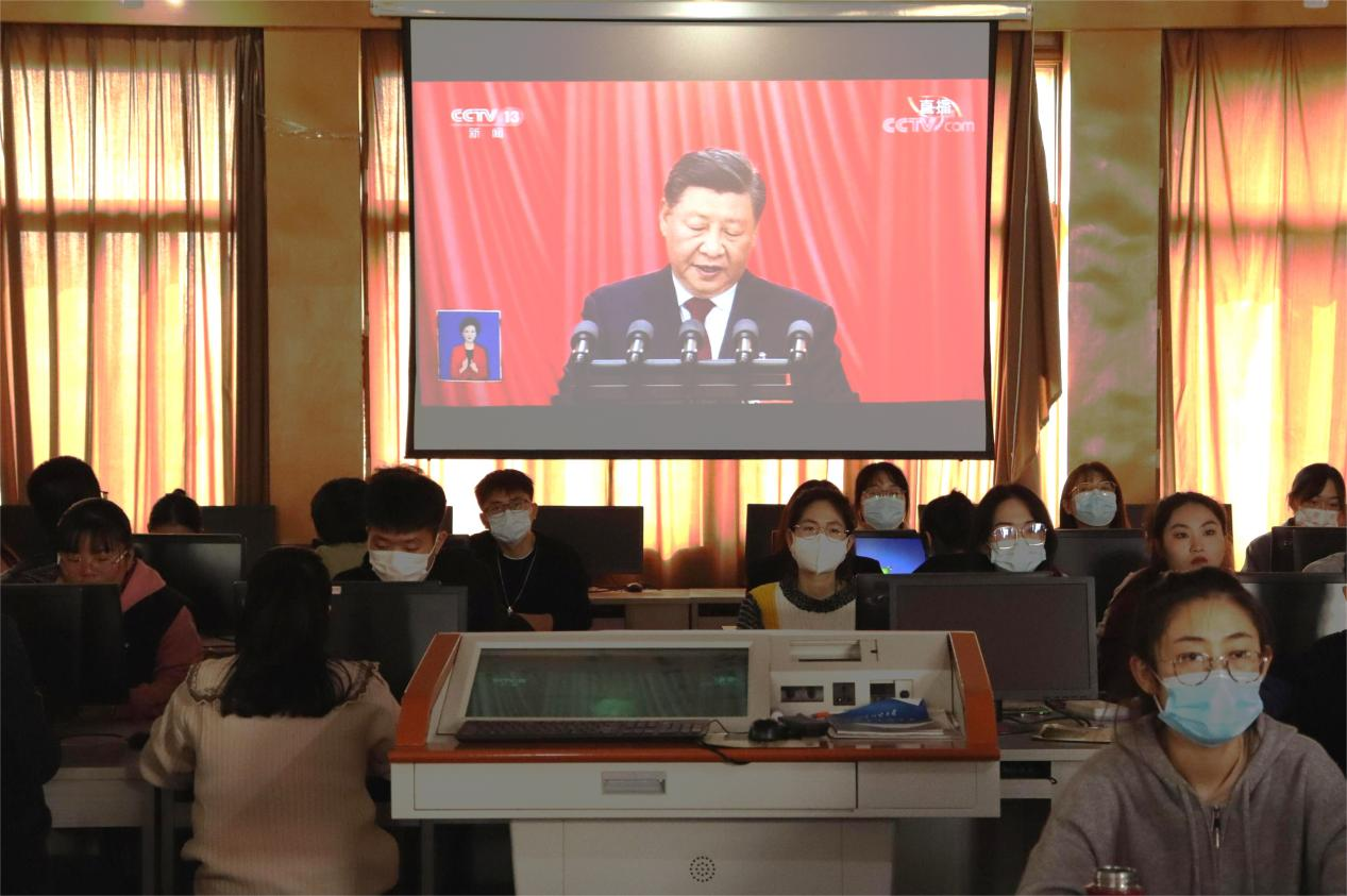 党委组织学院师生党员在学院410和502教室观看中国共产党第二十次全国代表大会开幕会直播。