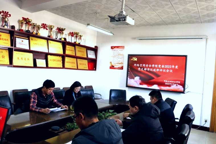 在410会议室召开了2022年度党支部书记述职评议会议,学院党委书记田云飞、党委副书记范瑞红、教工党支部书记秦文华、本科生党支部书记武玉龙、研究生党支部纪检委员王康参加了会议。