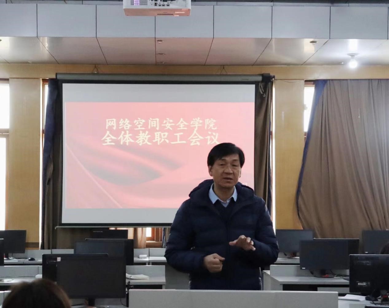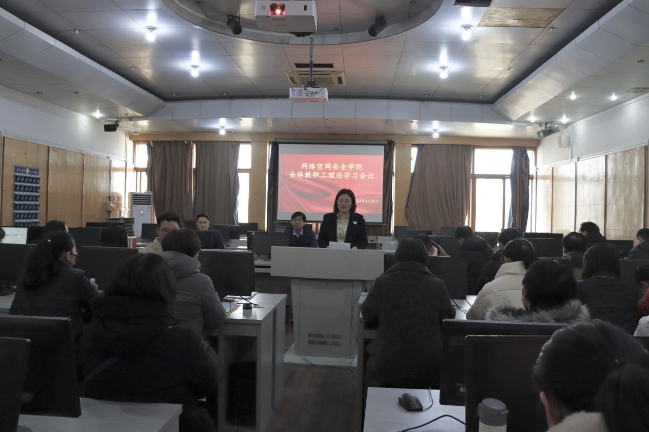 马旭传达了学校会议精神,就学校工作要点进行了重点强调。一是要调整优化专业布局,推进一流专业建设。二是要完善课程体系,构建教学团队,建立核心课程制度。三是要全面提升科研整体水平和服务经济社会发展能力。