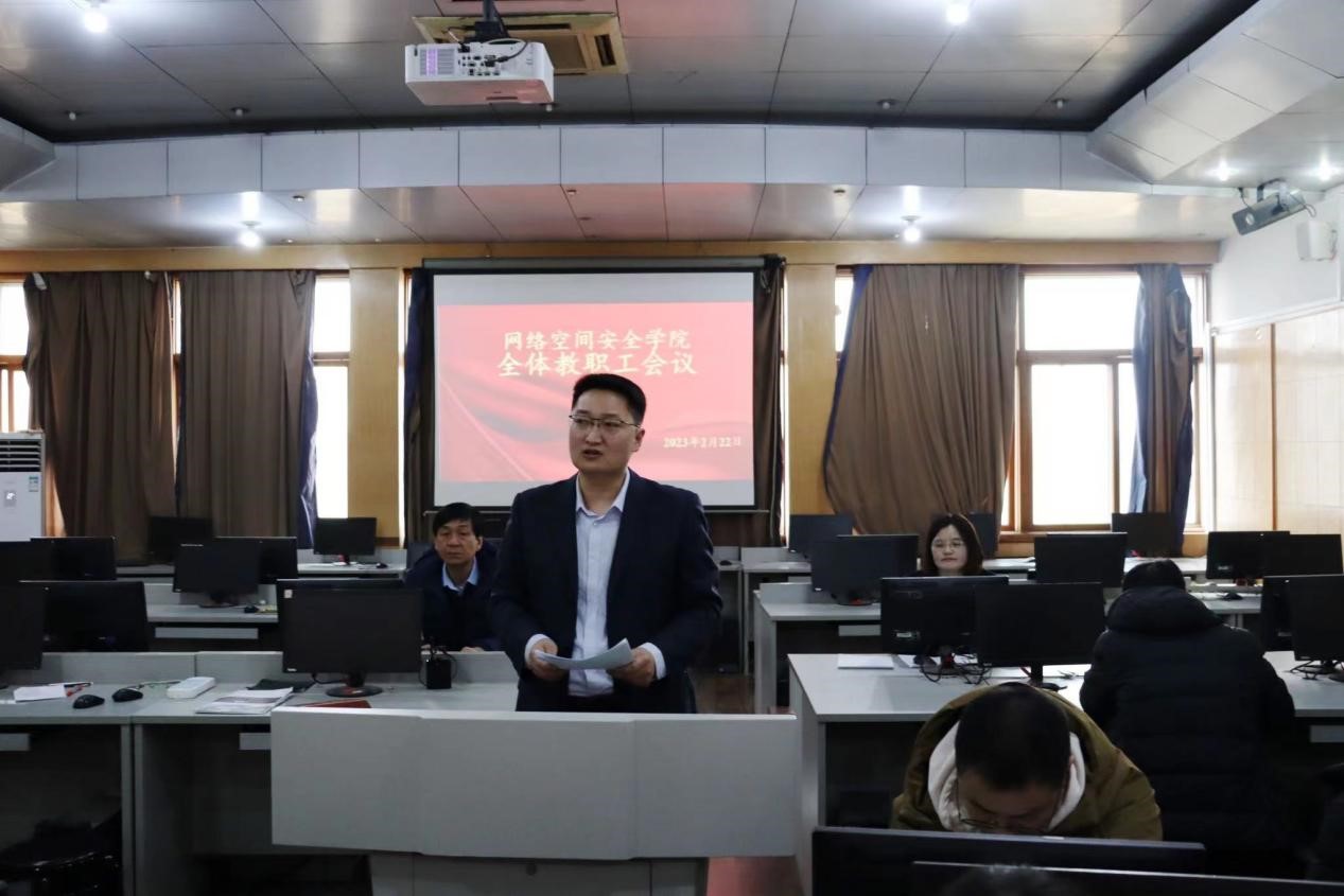 田云飞强调,2023年全面贯彻党的二十大精神的开局之年,也是全面落实学校第九次党代会任务部署的开局之年,全体教职工要坚定理想信念,牢记“为党育人、为国育才”的初心使命,抓好课堂教学,充分发挥课堂主渠道作用,构建大思政格局,做到全员全过程全方位育人;提高责任意识,时刻绷紧“安全”这根弦,筑牢安全底线,确保学生健康成长。