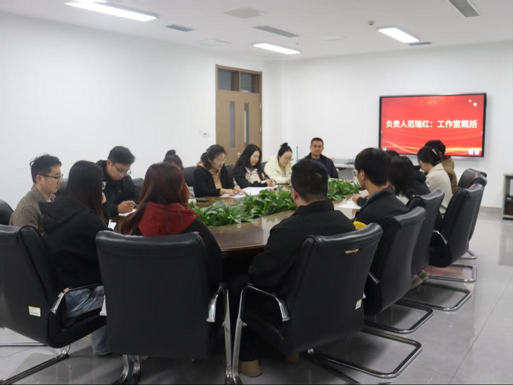 于格物楼A504会议室召开“数智融创”辅导员工作室工作例会。学院党委副书记范瑞红及工作室全体成员参加会议,团委学生会主席赵鹏州主持会议。