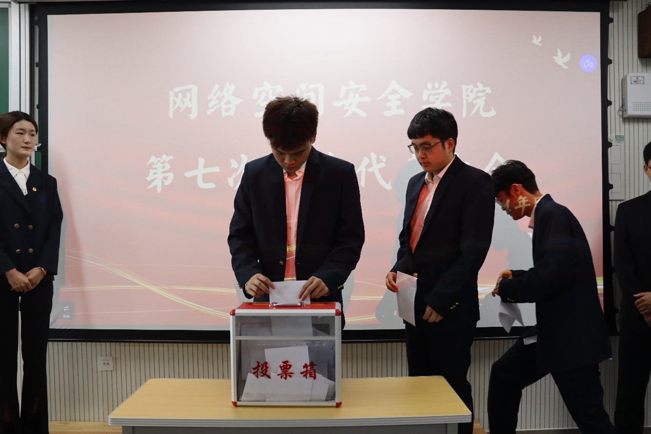 大会通过了学院第十届学生委员会选举办法(草案)及监票人、计票人名单,同时对新一届学生会委员进行分会讨论。本着公平公正公开的原则,与会学生代表有序进行不记名投票,最终确定刘子新、王静雯、崔宸硕当选新一届团委学生会主席团成员。