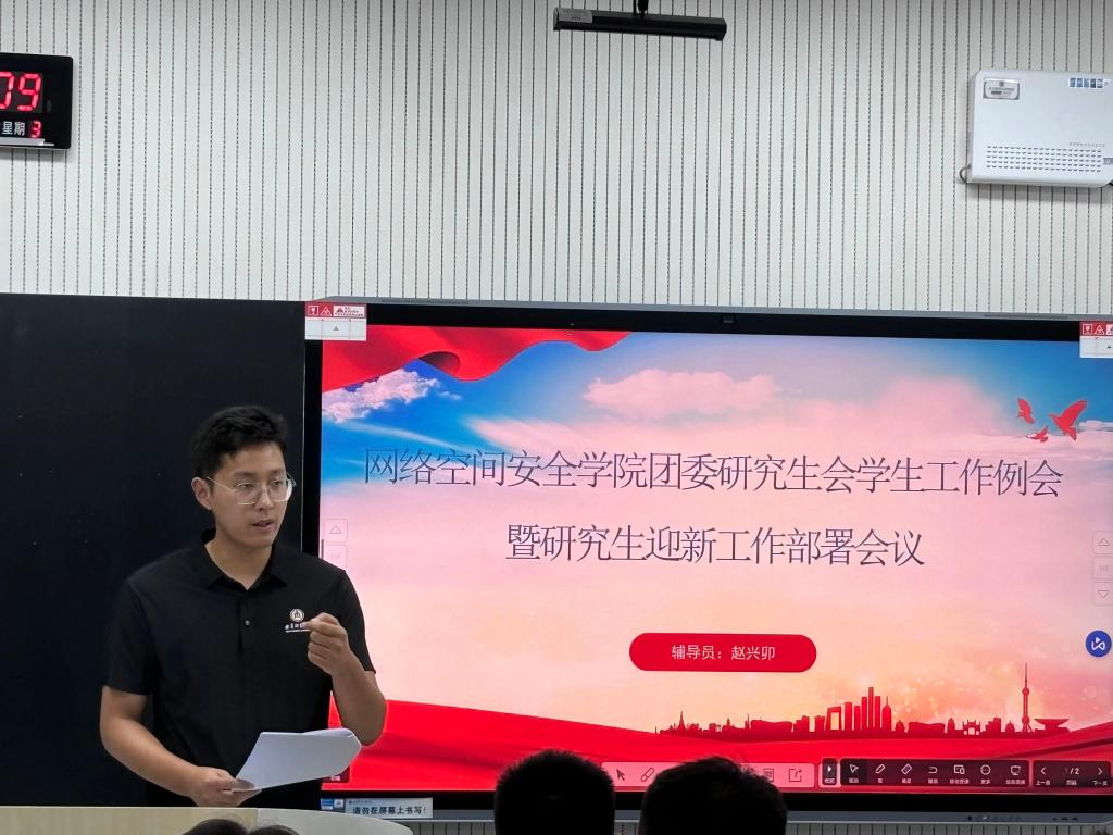 于2024年8月28日在格物楼B206召开学院团委研究生会学生工作例会暨迎新工作部署会议。此次会议由院研究生辅导员赵兴卯老师主持,学院研究生教学秘书曹腾老师及团委研究生会全体成员参加。