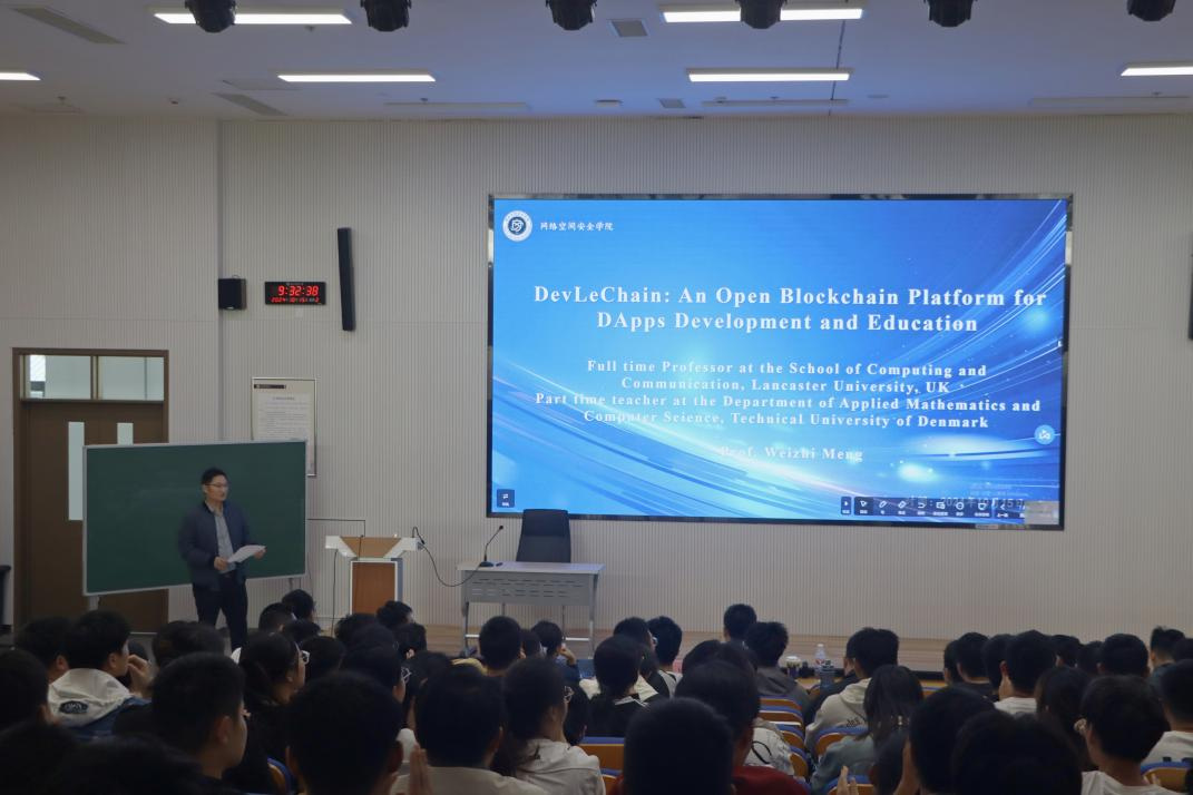 师生作了“DevLeChain: An Open Blockchain Platform for DApps Development and Education”的学术报告,本次报告会由马旭副院长主持,教师代表、全体研究生参加会议。