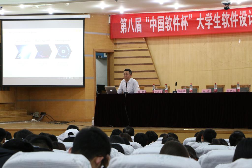 软件学院副院长倪建成在欢迎辞中表示,软件是新一代信息技术产业的灵魂,是引领科技创新、驱动经济社会转型发展的核心力量。软件学院自成立以来,一直在积极探索培养优秀软件人才的新模式和新方向,努力以做强一流专业,培养一流人才为目标,而这与“中国软件杯”的大赛理念不谋而合。他希望同学们珍惜本次难得的学习机会,认真聆听,参与到创新创业活动中,把参加本届“中国软件杯”大赛当成对学业水平的检验,历练专业技能、提高实战能力,为未来就业提升个人竞争力。