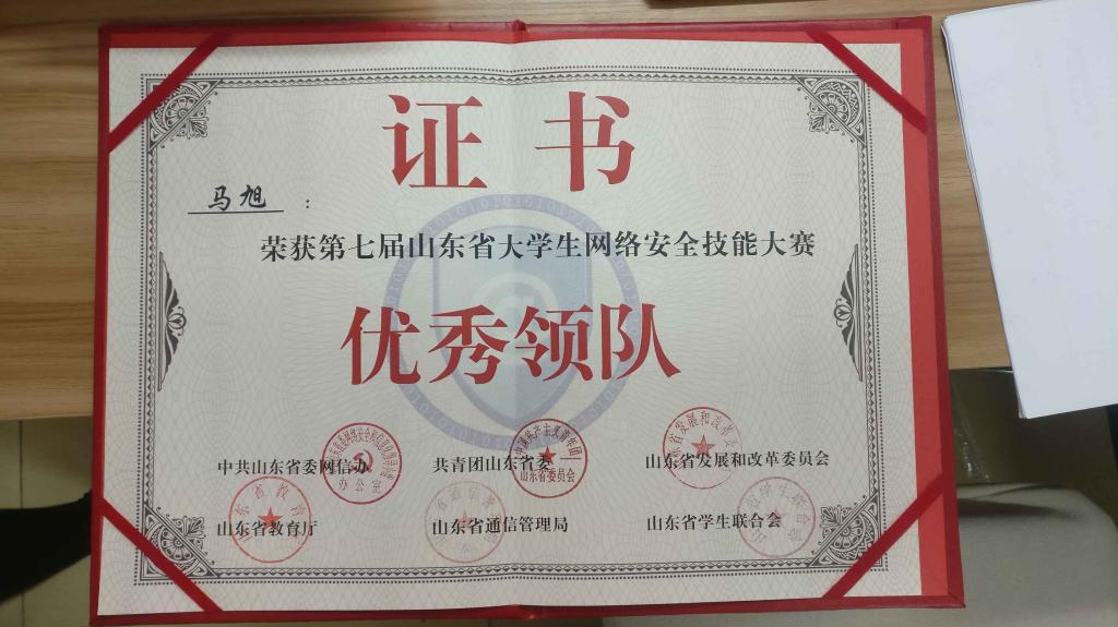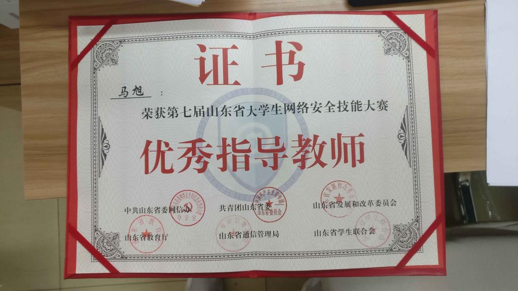 积极准备,认真对待。经过7个小时的激烈角逐,大赛最终产生大学生团体、大学生个人和网络安全技术爱好者个人三组奖项的特、一、二、三等奖,由马旭老师及三名同学组成的团队取得了团体三等奖的优异成绩。马旭老师荣获优秀指导教师和优秀领队称号。