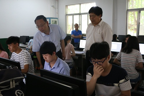 实验室与设备管理处杨革处长莅临比赛现场,对大赛的各项工作进行视察与指导,听取了高仲合院长对大赛的介绍并观看了同学们的答题情况。